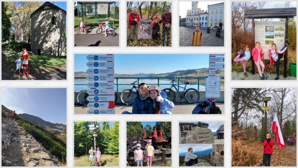 Nasza grupa uczniów z zapałem odkrywa kolejne miejsca – nie tylko w górach, ale także na trasach spacerowych i rowerowych. To prawdziwa przygoda pełna ruchu, radości i odkrywania świata wokół nas.