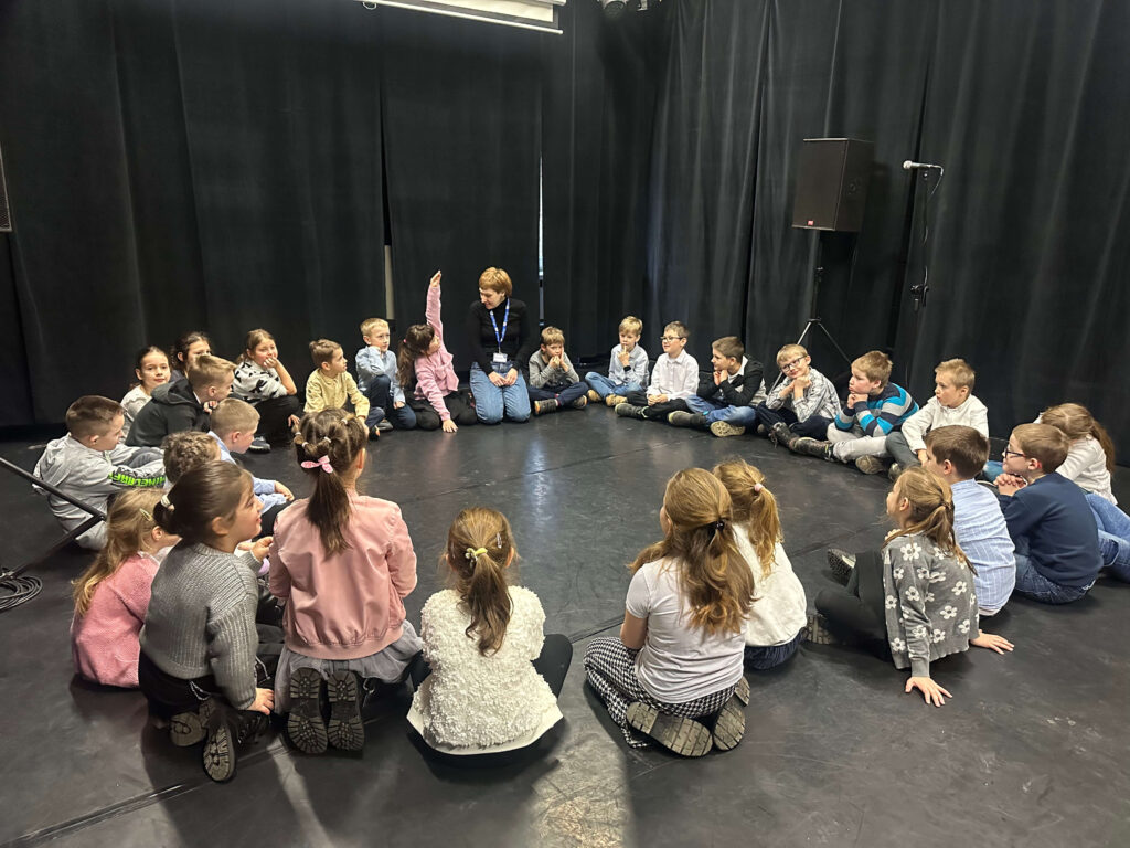 Pierwszym punktem wycieczki była wizyta w teatrze, gdzie uczniowie uczestniczyli w kreatywnych warsztatach teatralnych 🎬. Poprzez ruch, improwizację i pracę z wyobraźnią wcielali się w role małych aktorów, rozwijając swoją ekspresję i pewność siebie. Następnie obejrzeli spektakl „Dzieci z Bullerbyn” – pełną ciepła i humoru opowieść o dzieciństwie, przyjaźni oraz sile wyobraźni 🌼.