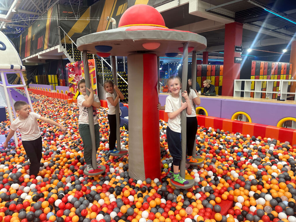 Po artystycznych przeżyciach przyszedł czas na sporą dawkę ruchu 💪. W FlyParku uczniowie korzystali z trampolin, zjeżdżalni i innych atrakcji, co pozwoliło im spożytkować energię i zakończyć dzień w doskonałych humorach 😄.